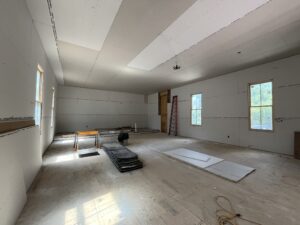 And finally, at Mount Zion Black Cultural Center in Athens, which is known to have a high water table, the constant rain made basement soil excavation a mud pit and caused the water table to rise. On the assumption that wet weather would only be more extreme in the future, HDC worked with the contractor Wolf Creek Contracting LLC to raise the level of the basement floor and enclosed all sump pits in waterproofed concrete enclosures. The basement will still be usable space, but design changes eliminate floor finishes and keep drywall a few inches off the floor behind the vinyl baseboard to minimize water damage in the future.