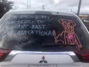 The five fastest dogs of each breed in 2021 were invited to run in the nationals at the Orange County Convention Center in Orlando, Florida. Also going on at the same time is the national agility invitational. Ziti received her FastCAT invitation in October and on December 11, 2022, Ziti began her adventure!